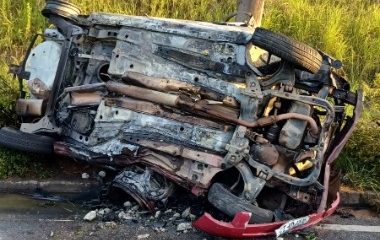 Pedro Antônio Vilian Lopes não conseguiu sair do veículo antes das chamas; outros três ocupantes ficaram feridos. Pneu estourado pode ter causado acidente.