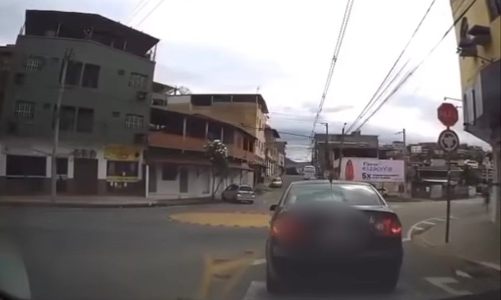 Imagens mostram o momento em que um Ford Fiesta atinge em cheio um Honda Fit no bairro Canaãzinho, em Ipatinga, neste domingo (20).