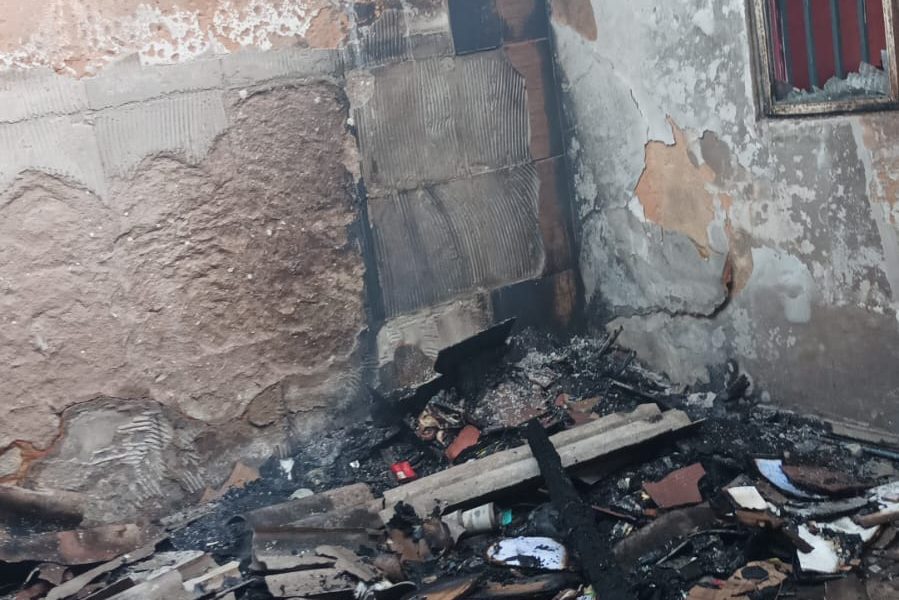 Fogo destruiu cômodos da casa, mas ninguém estava na residência no momento